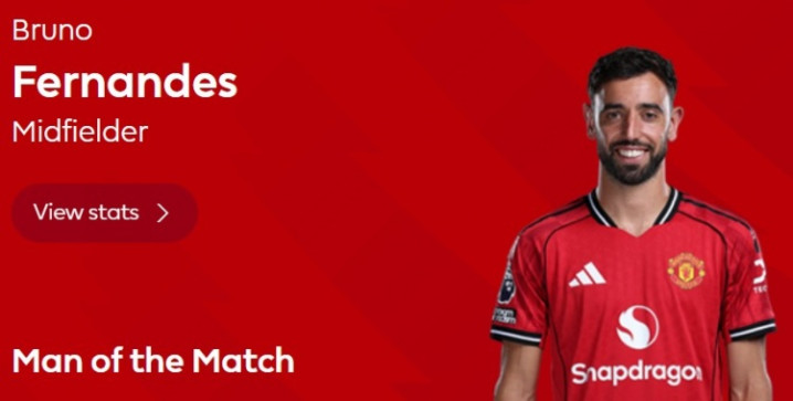 本场比赛B费传射建功发挥出色,赛后他也当选英超官方评选出的本场最佳球员。